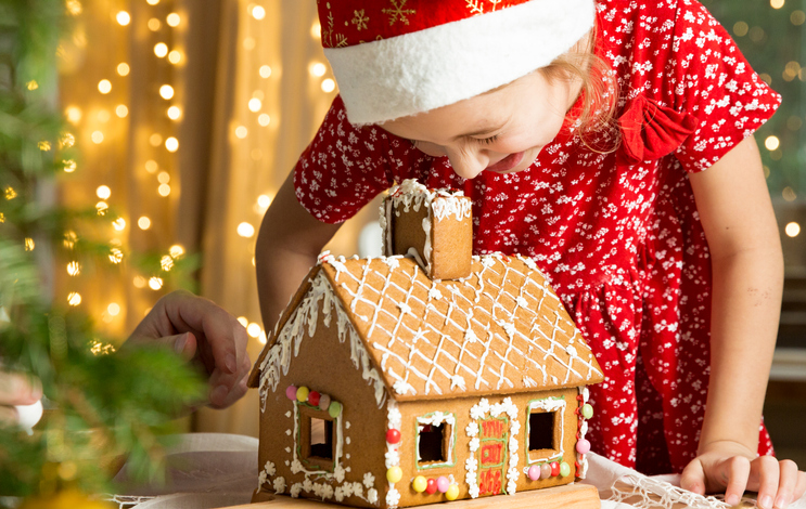 If you’re planning on leaving your gingerbread house up all month long, it might be time to sacrifice a little bit of edible foundation for a more sturdy construction. We suggest using a tissue box as a base and icing gingerbread pieces to the sides for a sturdy base for your home.
