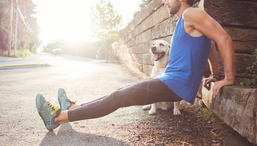 Humankind’s best friend can also be the ultimate training partner. Knock out some cardio and tire out your pup at the same time. When you get creative, there’s almost nothing you can’t accomplish with your dog by your side for motivation. Try running, cycling, rollerblading, hiking, stair running or sprinting. Or get creative with this interval workout that also mentally stimulates (and trains) your dog: