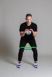 Choose a resistance band for your fitness level, and place it around the lower thighs, just above the knee. Stand in an athletic stance with the knees bent and hands at the chest. The legs should be wide enough to keep tension on the band at all times. Without ever losing the tension on the band, shuffle to the left side a few feet, then shuffle back.