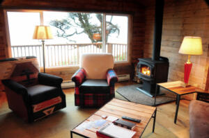 Overstuffed armchairs are upholstered in vintage Pendelton blankets, kitchens are updated and well-appointed and each cabin has a wood-burning fireplace or stove, a non-negotiable when the cozy potential is this high. Huge picture windows overlook the beach or Boone Creek, which feeds into the ocean. Each cabin has a deck and a grill for warmer weather.